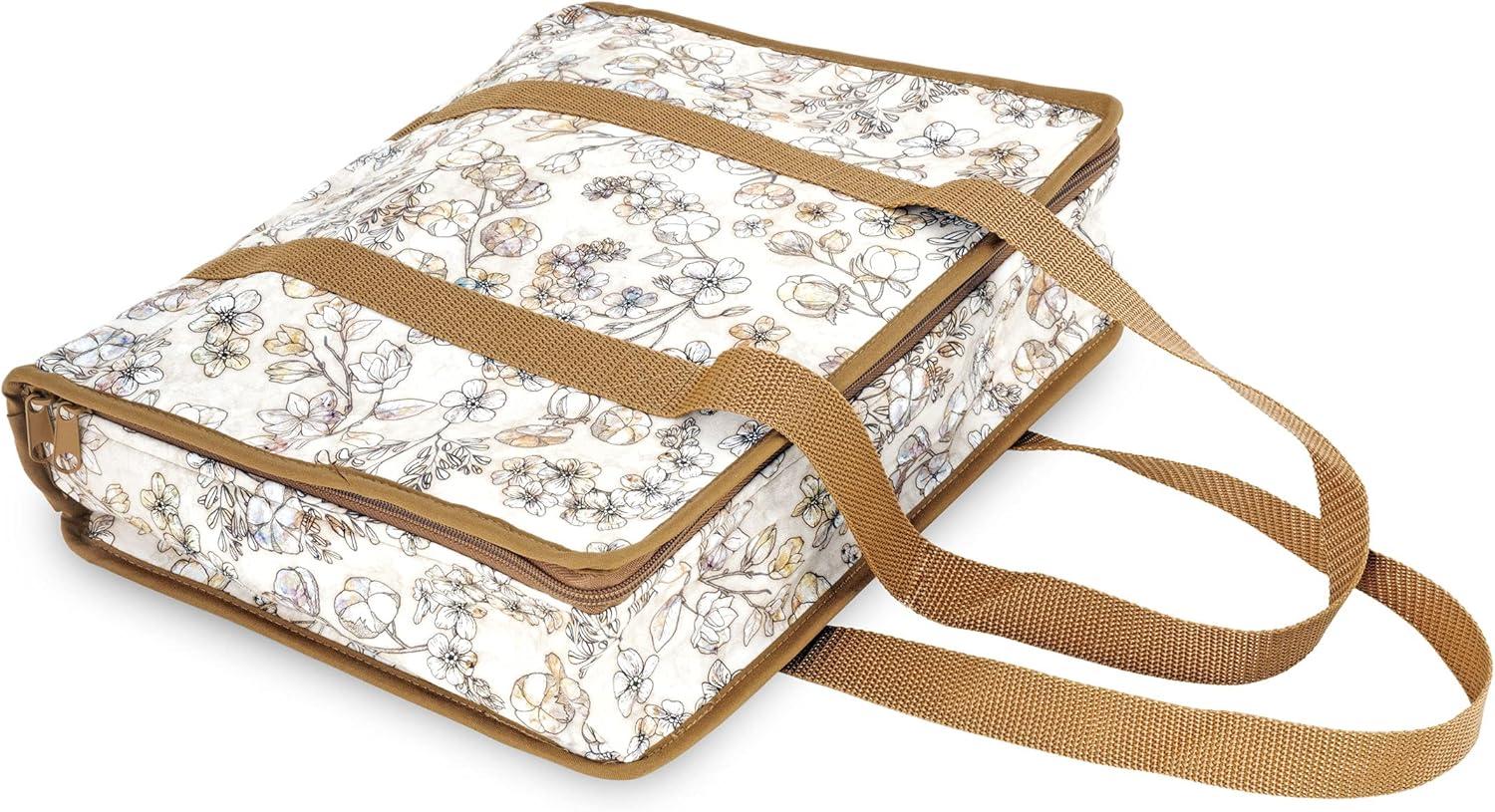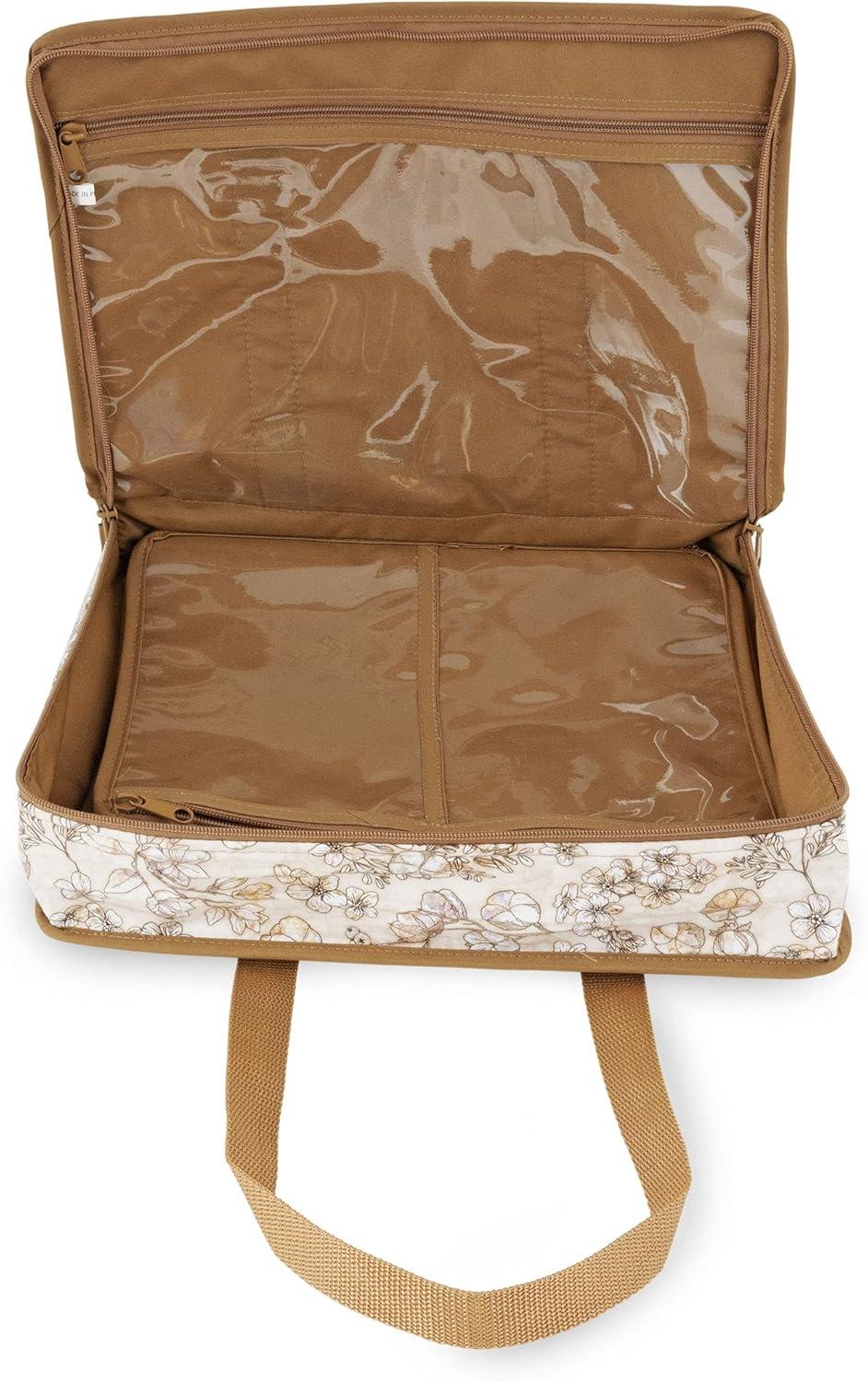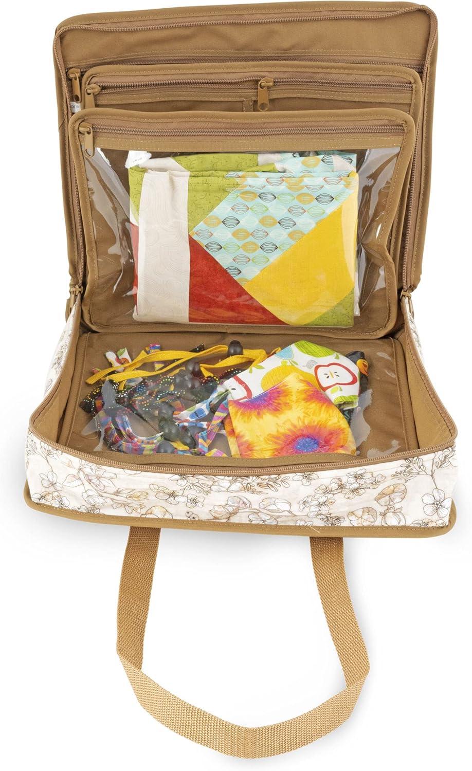 The Dritz all-purpose project organizer bag is the perfect companion for sewing, quilting, needlecraft projects on-the-go. It's a portable organizer featuring loads of pockets for keeping supplies separated and ready to use. Soft beige floral print with tan handles and trim.