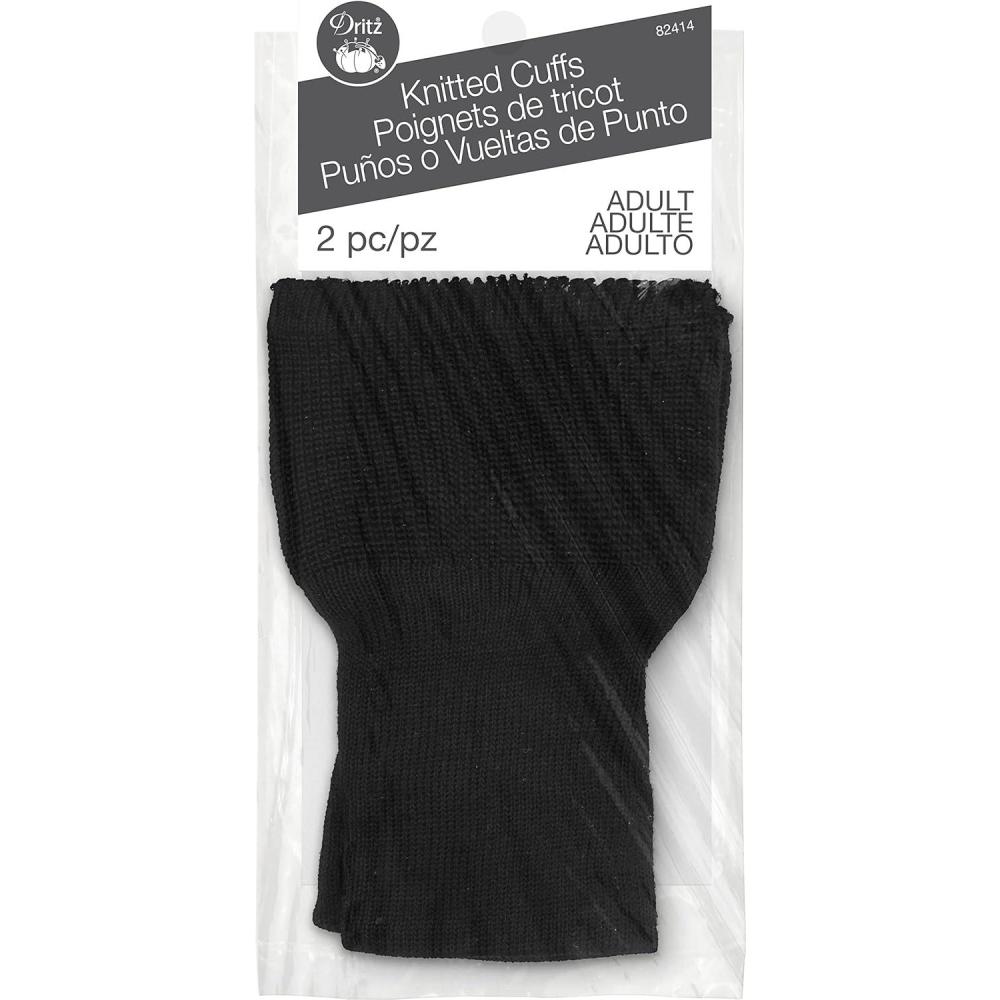 Dritz Clothing Care 82414 Knitted Cuffs, Adult Size (2-Count) , Black