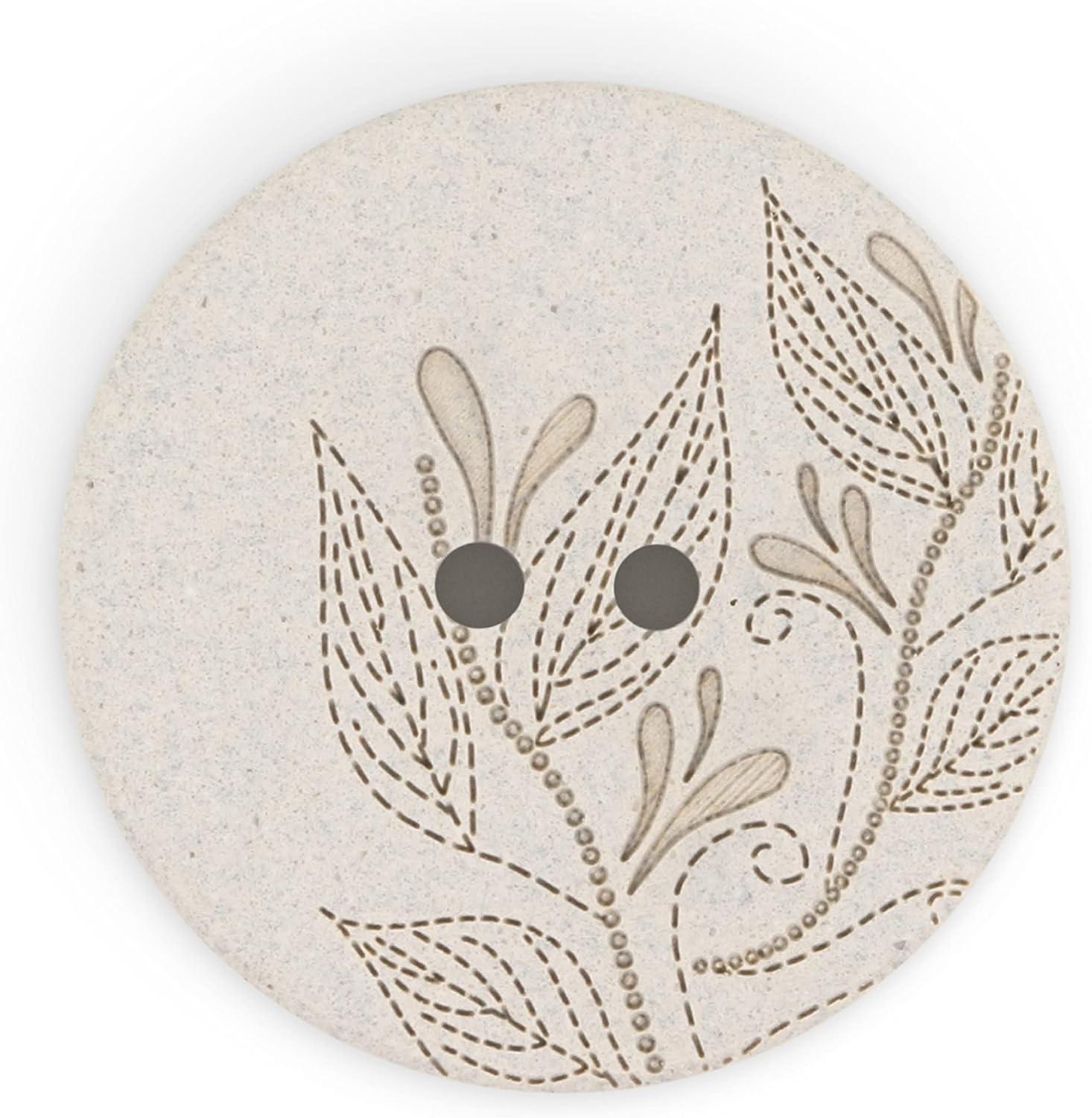 Dritz Round Floral, 23mm, Dark Green, 6 Recycled Hemp Buttons, 23 mm, 6 Count(Light Grey)