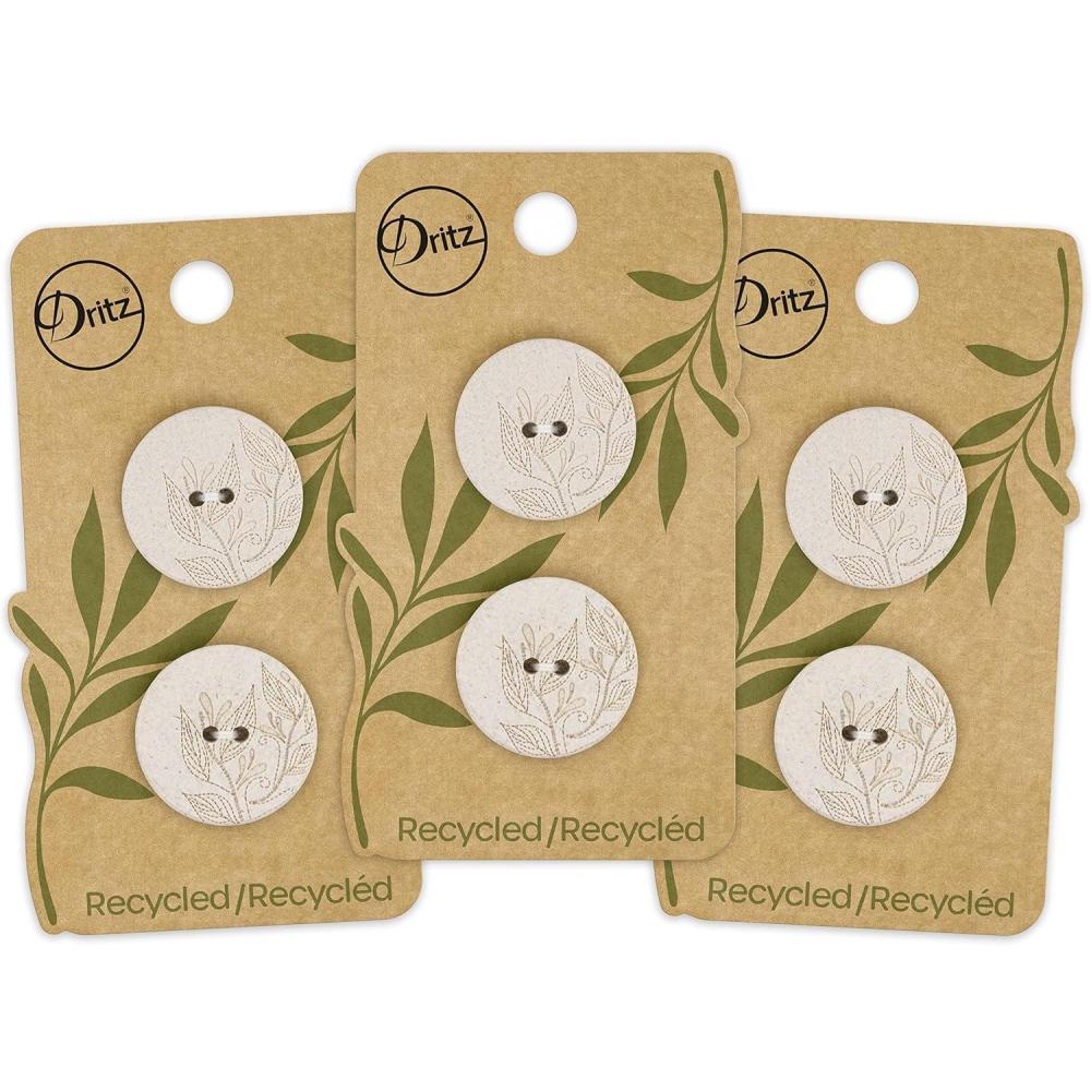 Add Dritz buttons for the perfect finishing touch to handmade fashions or to spruce up ready-to-wear apparel. These fashionably designed buttons are produced using sustainably sourced and recycled materials. We reclaim disposed production leftovers, shred the materials and refabricate them into buttons.